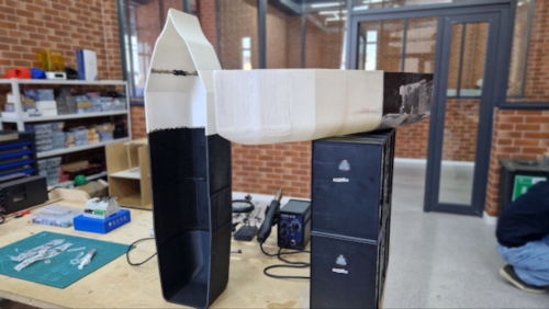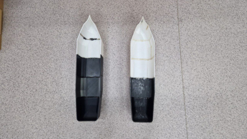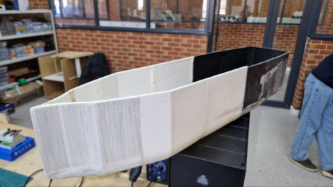 The full platform of the vessel could not be manufactured as a single piece due to the size limitations of a standard desktop 3D printer. The overall dimensions of the vessel are approximately 75 cm (length), 16 cm (width), and 15 cm (height), which exceeds the printable area.
