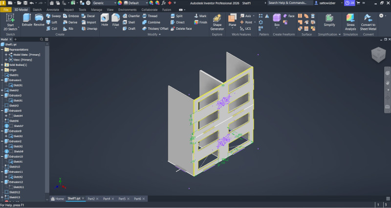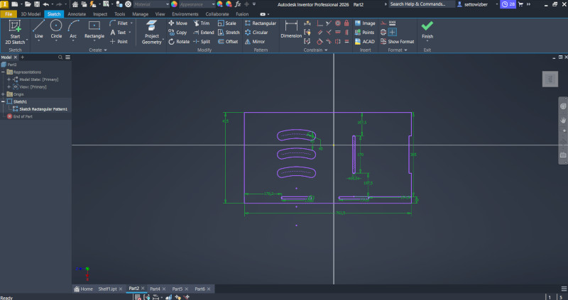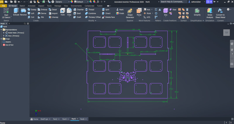 I designed the structure in Autodesk Inventor and created a parametric sketch. The model was divided into several parts that later would be cut from sheet material.