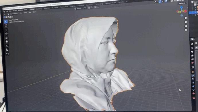 The scanned object was an organic form (a bust scan of myself). The result was initially a point cloud, which required post-processing in Blender to smooth surfaces, close mesh gaps, and eliminate noise.