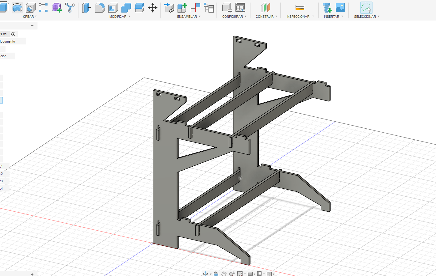Additionally, lateral panels were modeled in 3D to validate structure, proportions, and assembly logic before fabrication.