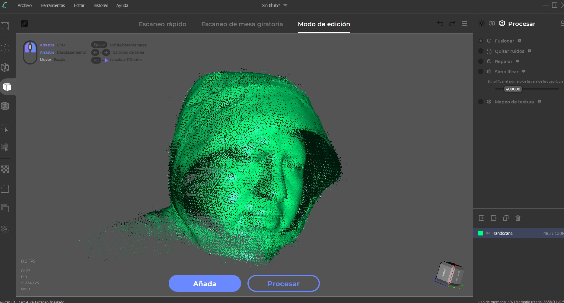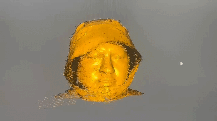 The scanned object was an organic form (a bust scan of myself). The result was initially a point cloud, which required post-processing in Blender to smooth surfaces, close mesh gaps, and eliminate noise.