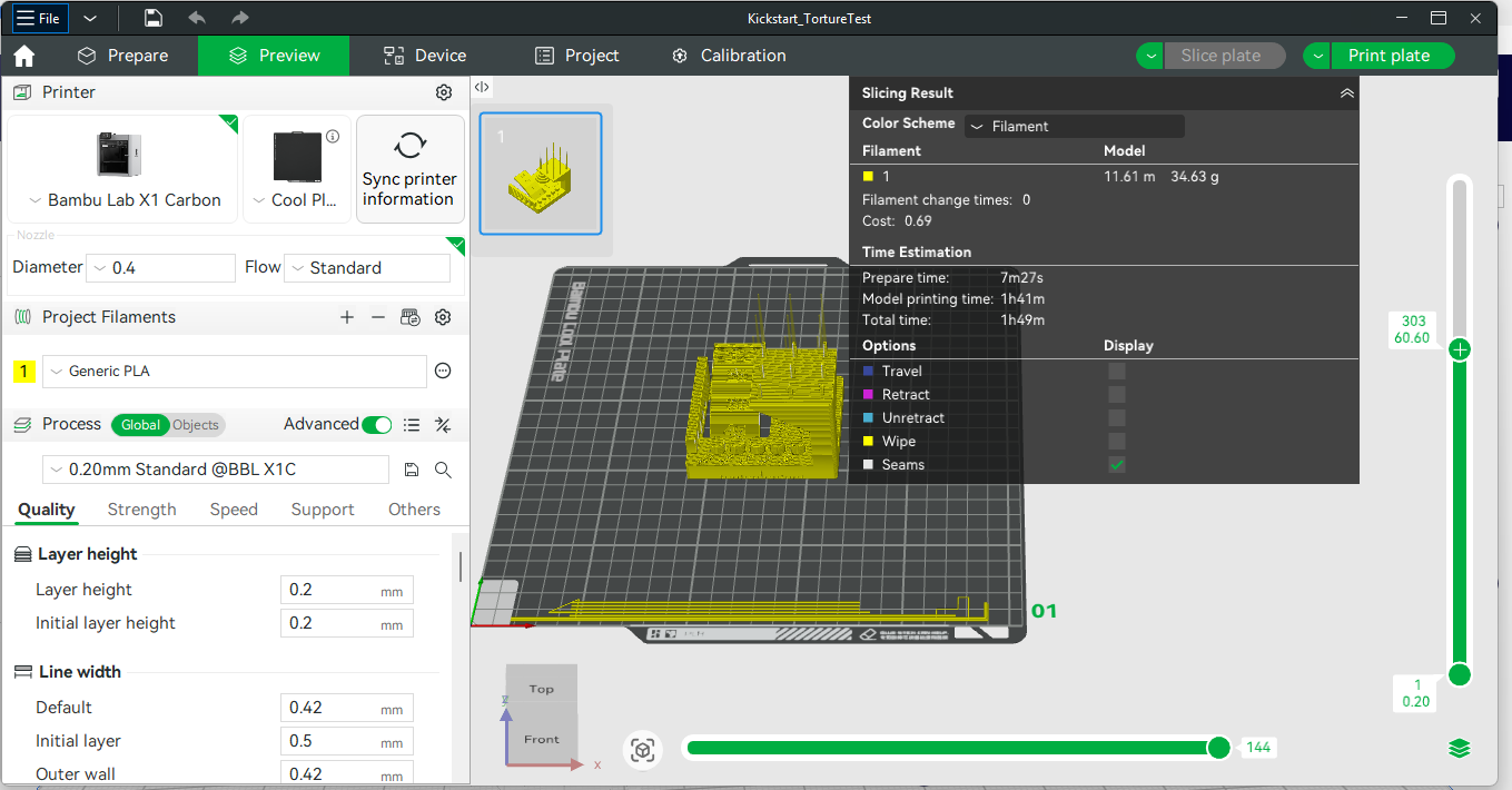 The slicing process was carried out using Bambu Studio. The following parameters were applied: