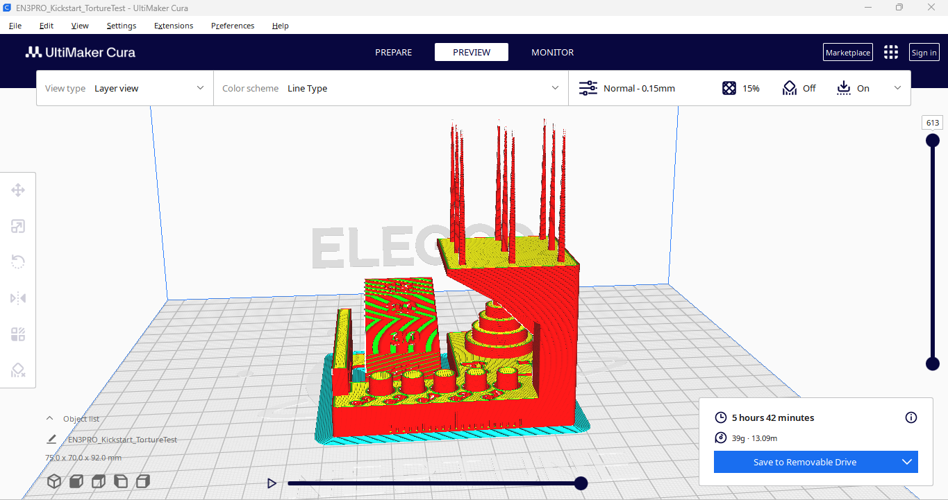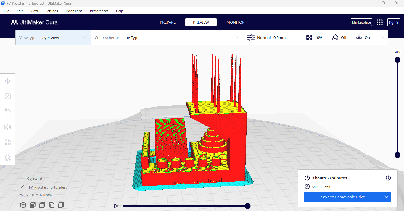 To evaluate the performance of different machines, the same test file was printed on three different 3D printers available in the FabLab: