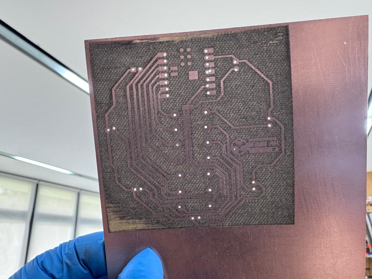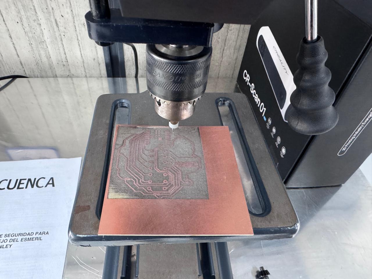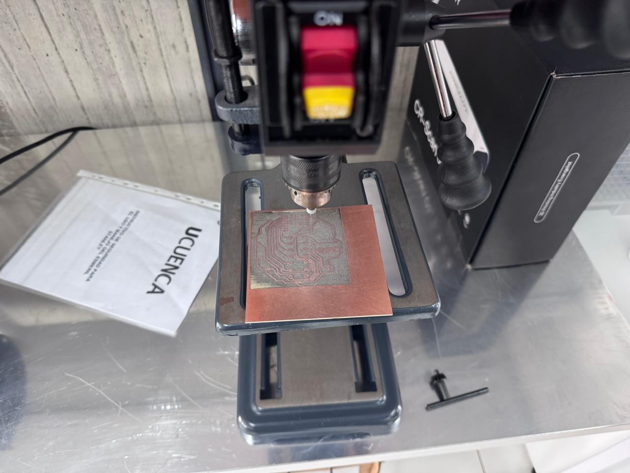 Once engraving was completed, holes were drilled for through-hole components.
