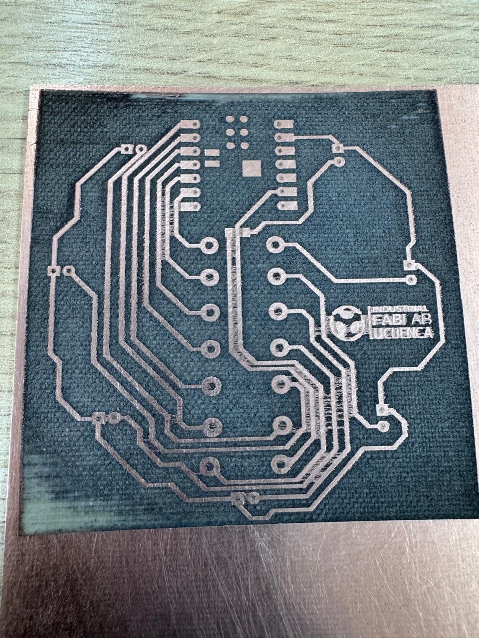 The PCB layout was exported and processed in Inkscape to generate a file compatible with the fiber laser.