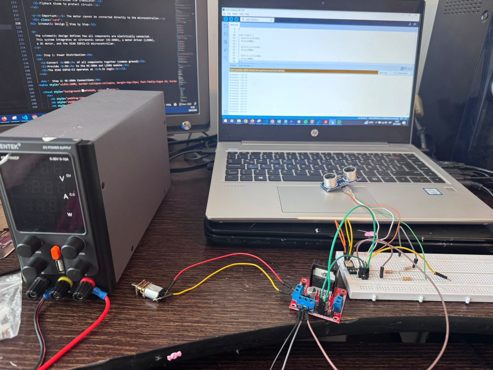 In this project, a proximity detection system is developed using the HC-SR04 ultrasonic sensor and the XIAO ESP32-C3 microcontroller to control a 5V DC motor. The system uses distance measurements to activate or deactivate the motor through an L298N motor driver module.