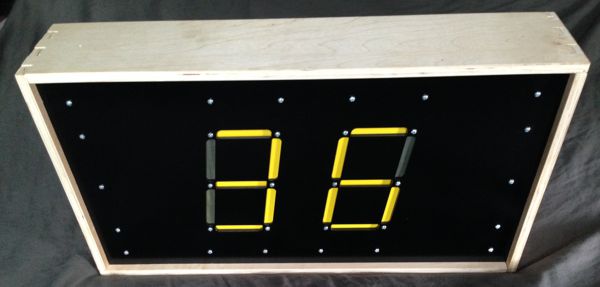 Finished small-scale scoreboard prototype. This version had 6.5 inch tall digits.