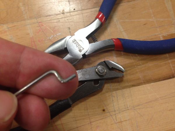 The push rods are made from 0.075" stiff wire that can easily be bent by hand. I found a iny pair of channel locks that were perfect for the job.