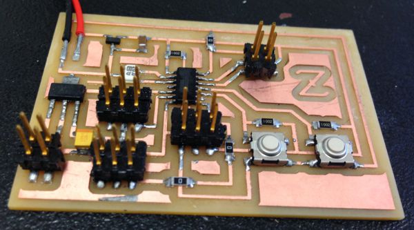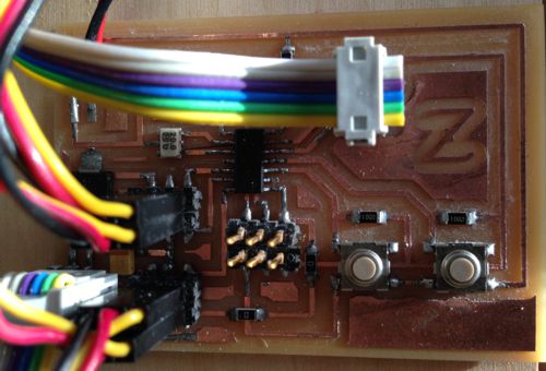 I cut the board on the Modela mill and soldered all of the components.
