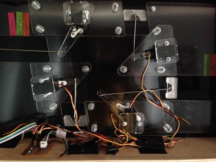A small scale prototype of a low-cost scalable design that uses four servo motors to control the display of two seven-segment digits.