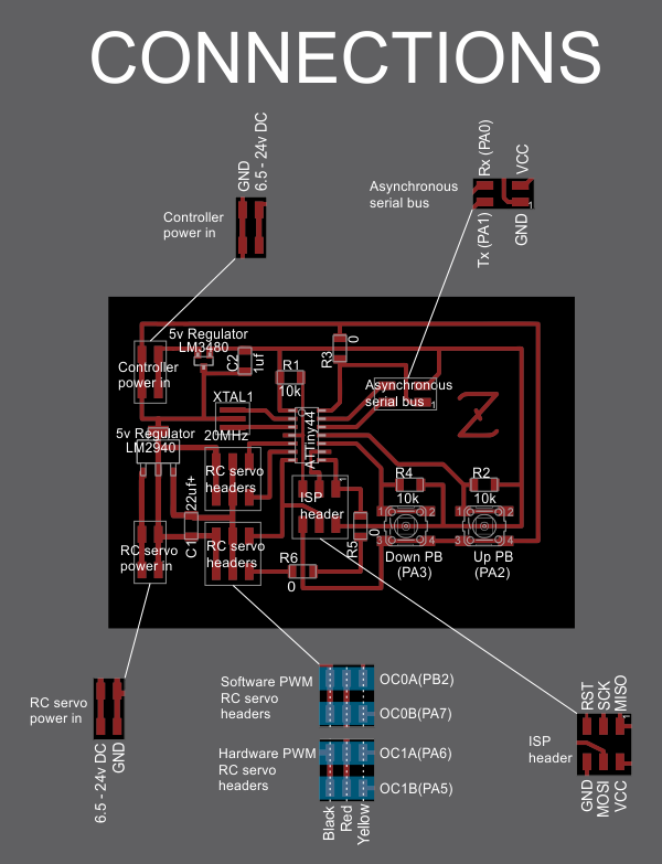 Since this circuit board does so many things, I made a diagram to label all of the components, headers, and power connections.