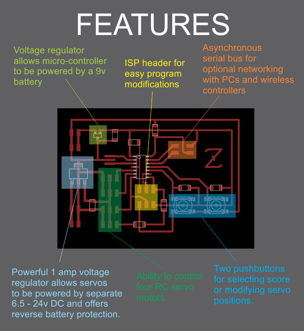 I used Eagle CAD to create a custom circuit board that integrated together all of the features that I needed.