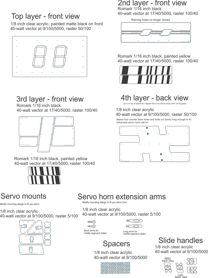 CAD diagrams showing all the different laser cut parts.