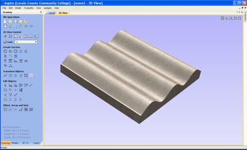 - I used Vectric Aspire to 3D model the wave shape by sweeping a vector of the wave along a straight rail down the center of the part.