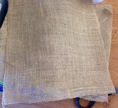 Burlap cut to the shape of my part. Note each layer has fiber strand orientation in a different direction.