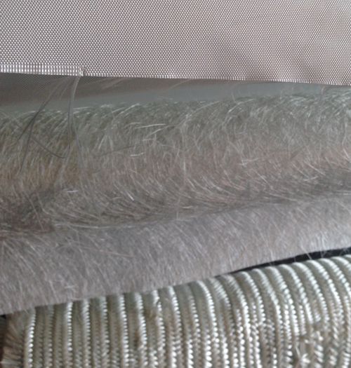 Three different types of fiberglass: smooth high thread count fabric, random orientation strand, and thick rope like fibers.