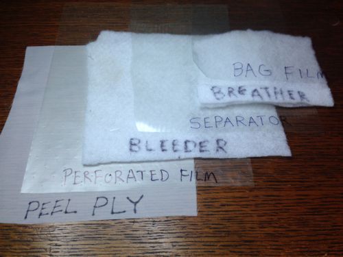 - We then quickly layered all the films and breathers in the right order. The final layer of film is the vacuum bag which is held to the table using sealant tape which is like sticky putty which comes on a roll. A vacuum port is poked through the vacuum bag and then attached to a vacuum pump.