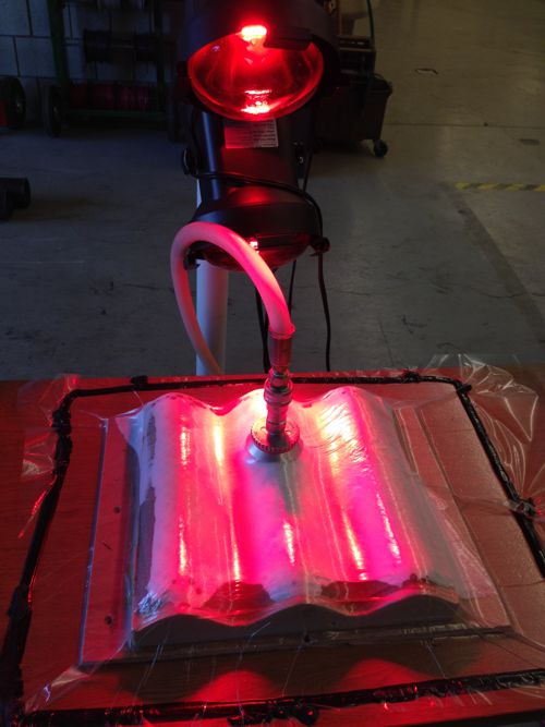 - Heat lamps were moved into position to help with the curing. I was surprised how much heat the resin produced as it cured.