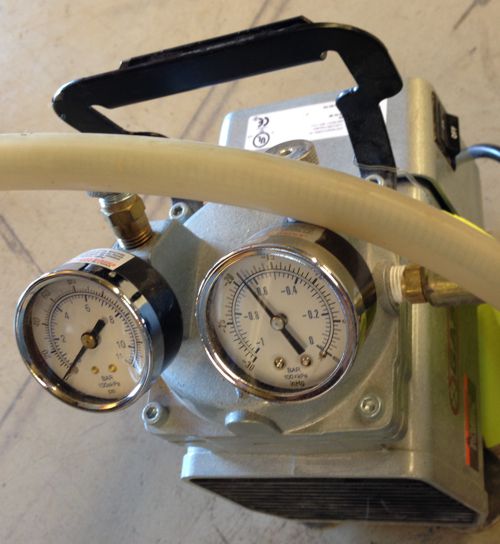 Vacuum pump - gauge reads approximately -19 inHg (inches of mercury)