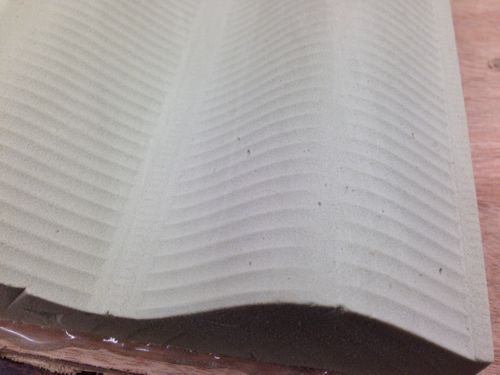 - I was surprised how rough the surface finish was. Even though I used I step-over of about 50%, there were grooves the width of the tool. The machinable foam was very easy to sand by hand. I cleaned up the form a little with a flexible sandpaper block but I decided to leave most of the groove marks to see how well they reproduced by the composite part.
