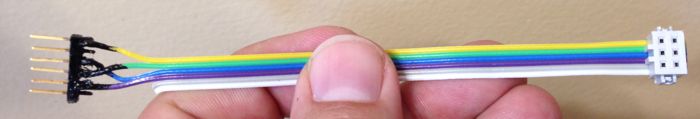 A simple FTDI to 4-pin asynchronous serial bus adapter cable. It may not look real pretty or be durable but it works. I didn't have heat shrink tubing so I used liquid electrical tape. I didn't have a 4-pin ribbon connector socket so I used a 6-pin. Consider this a successful prototype.