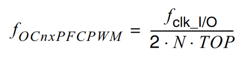 The PWM frequency for the output when using phase and frequency correct PWM can be calculated with this equation.
