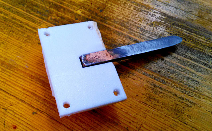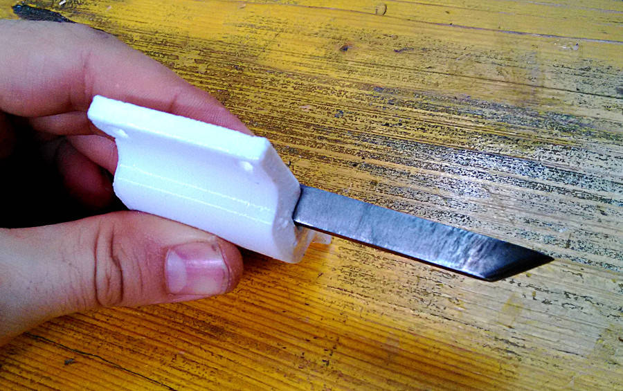 I decided to make the tool with a very hard steel, even if the objective was to cut foam, this cause it's easier to make it very sharp and this is reducing the stress on the machine. The entire process was done by hand with the objective to get a round blade on the to and straight on both sides.